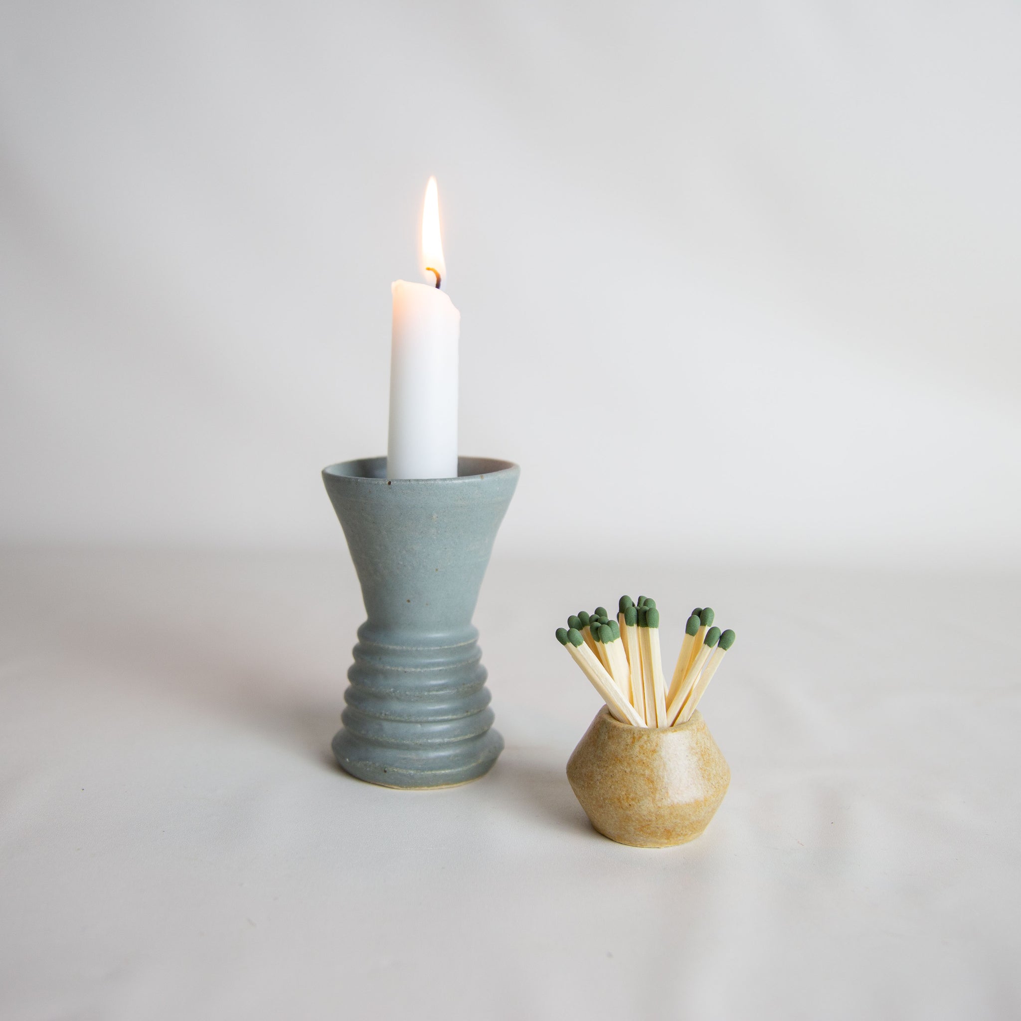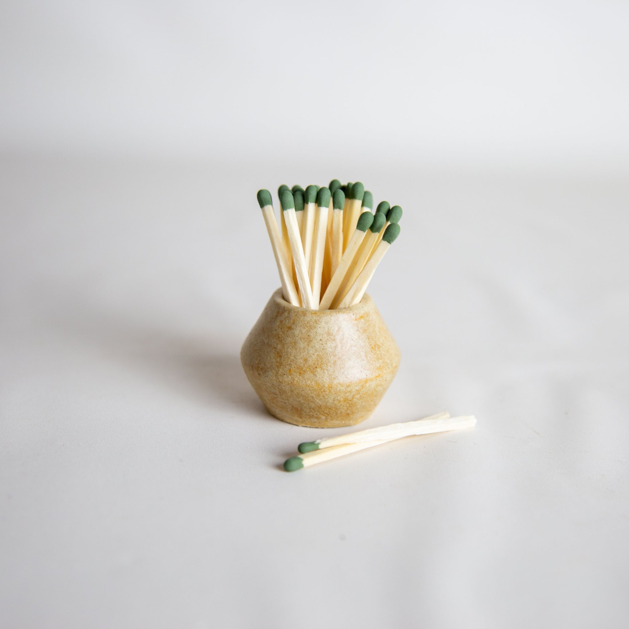Teeny Tiny vase perfect for holding items such as matches or toothpicks. Can be used with regular matches. Simply strike on the match striker sticker located on the bottom to ignite match.