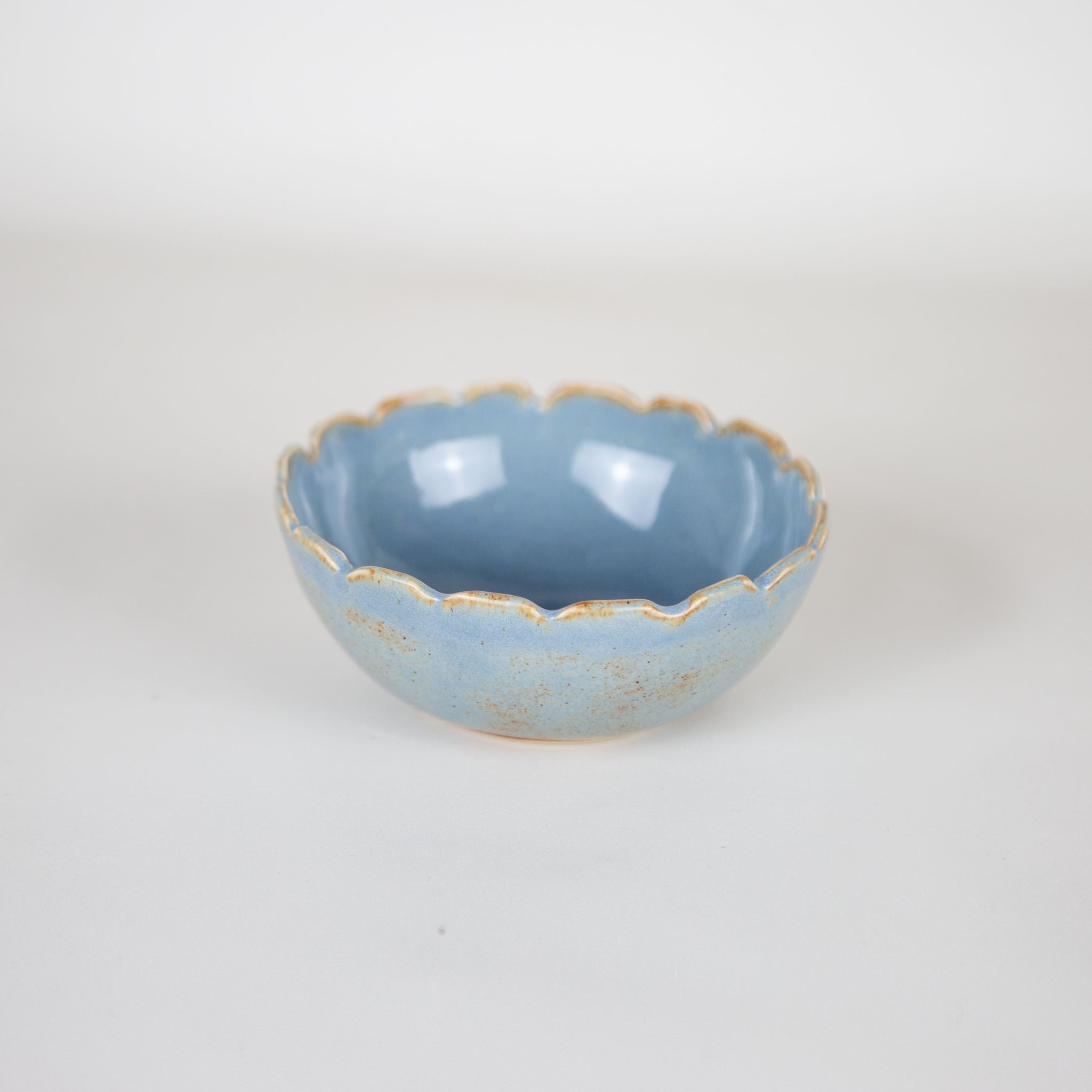 These tiny scalloped bowls are perfect for small snacks, jewelry or a thoughtfully placed catch-all . Hand thrown on the pottery wheel.