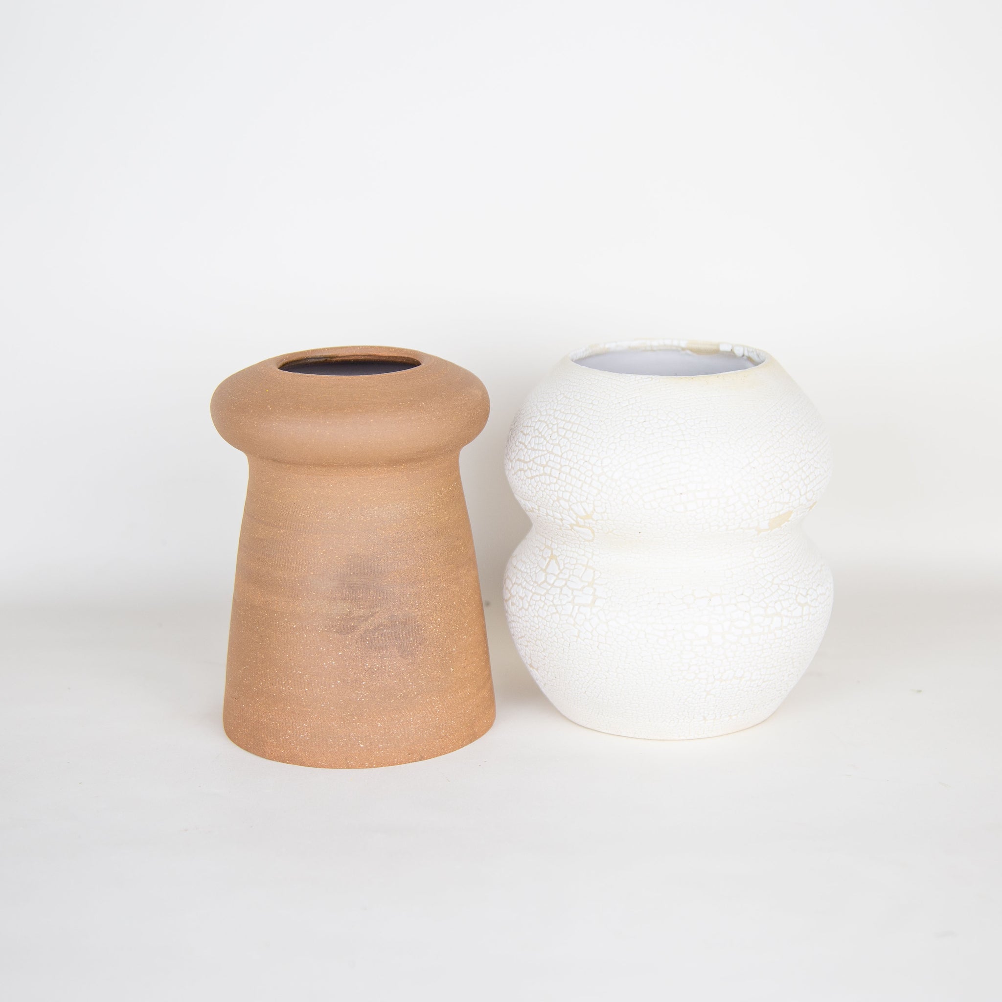 Upside down bulb vase with raw red/brown clay body. Hand thrown on the pottery wheel.