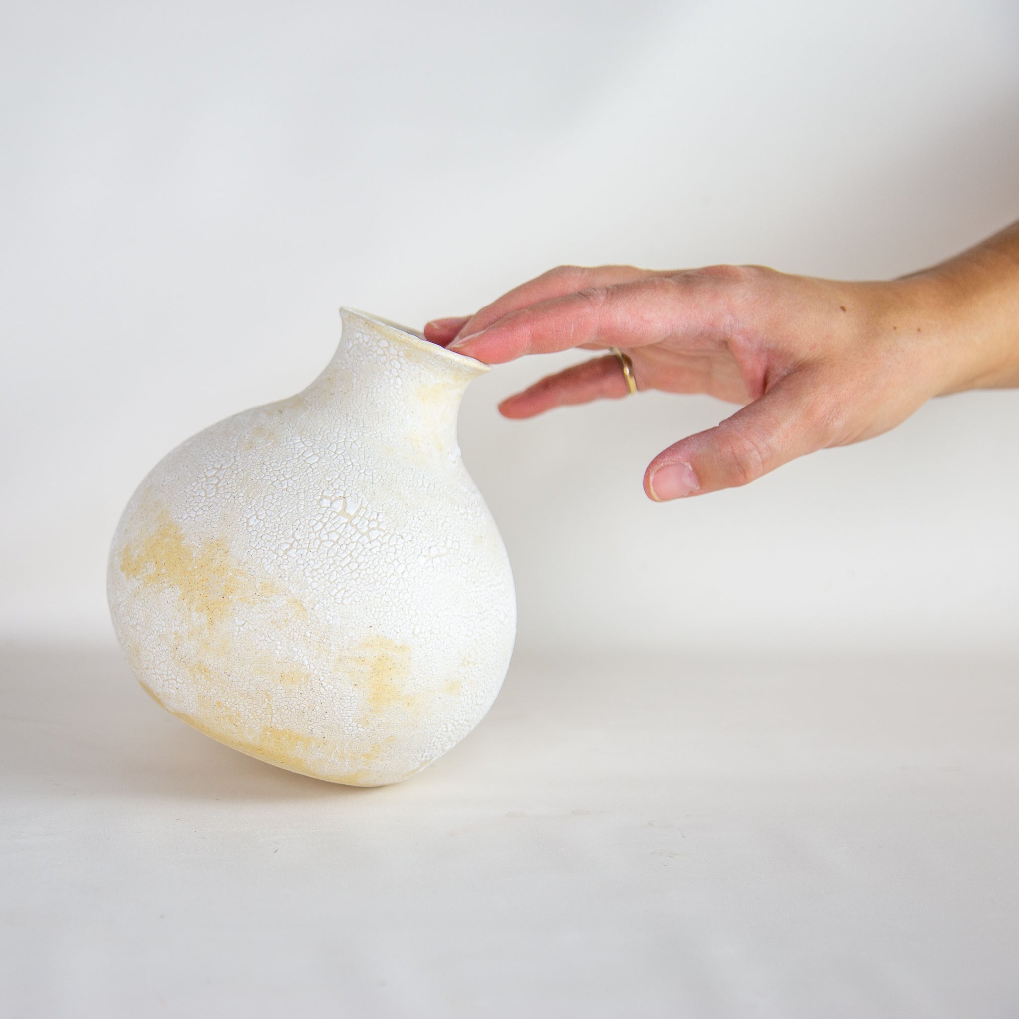 Vase with white crackle glaze. Hand thrown on the pottery wheel.