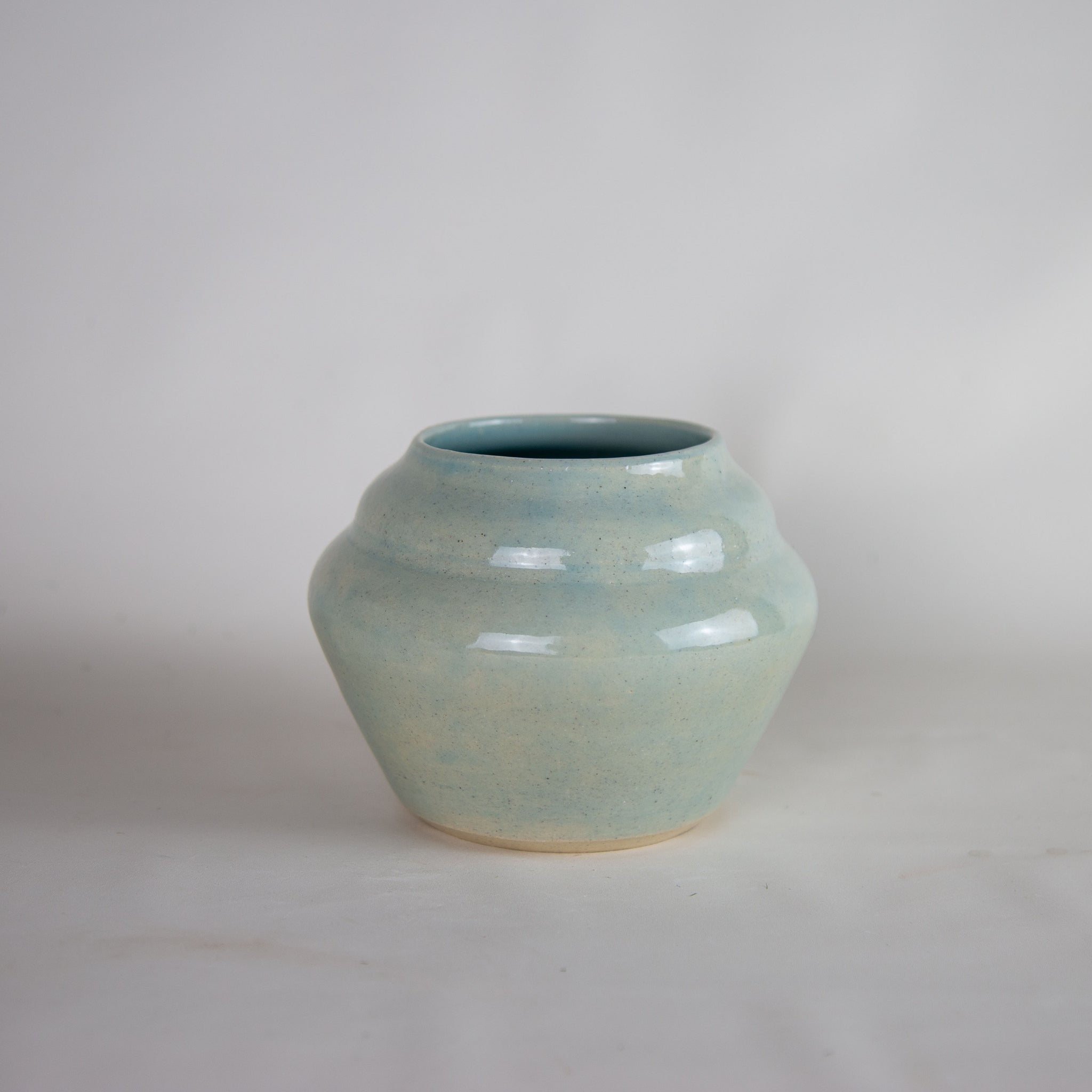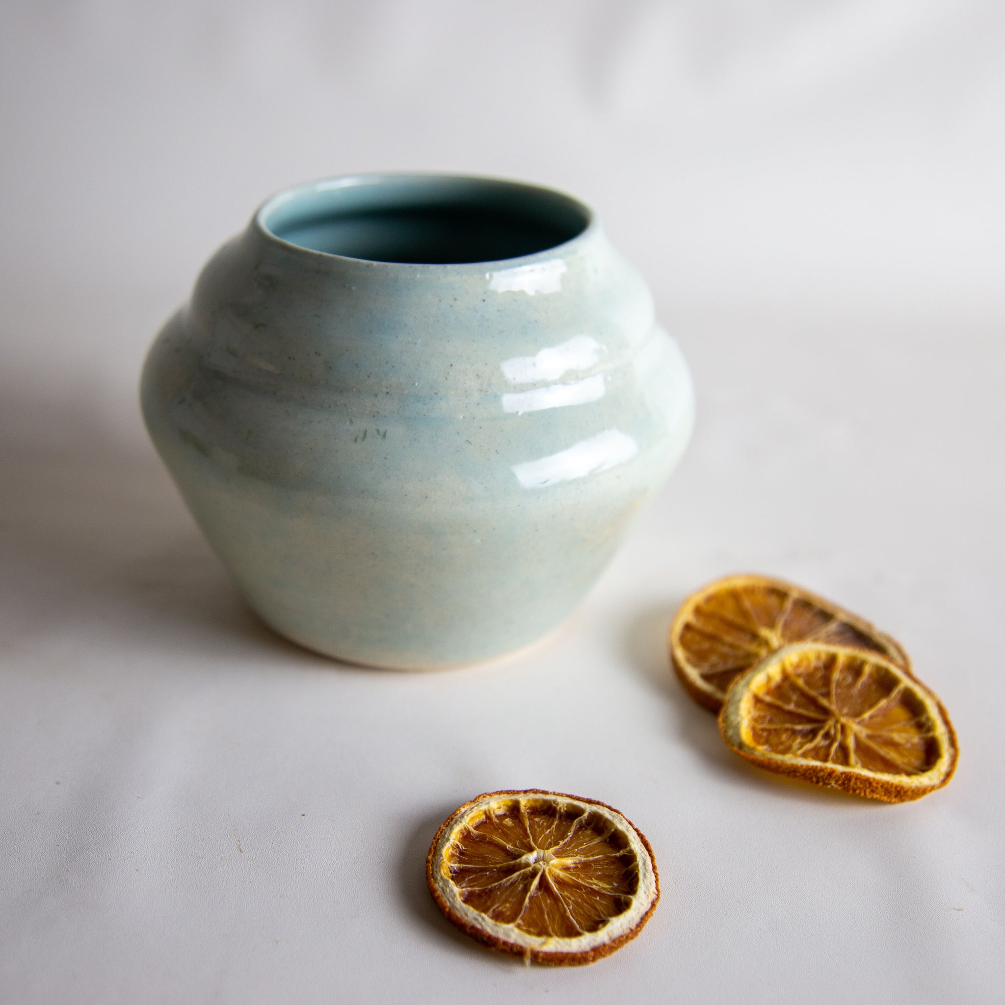 Vase with light blue glaze. Hand thrown on the pottery wheel.